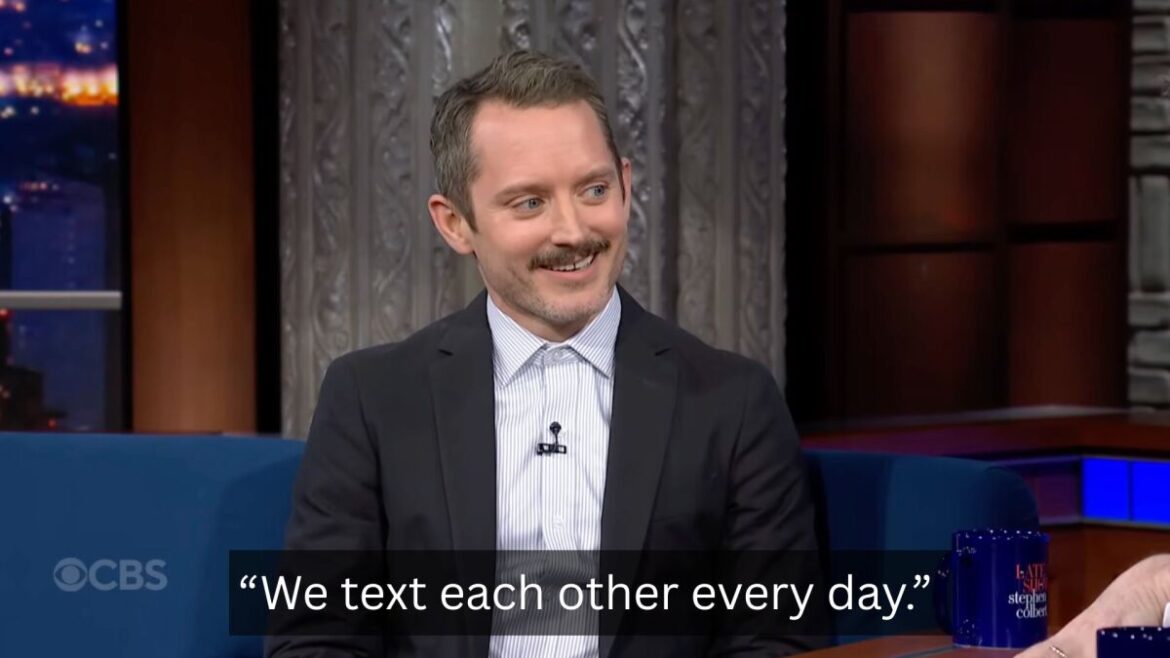 In the Late Show clip above, Elijah Wood reveals to Stephen Colbert that he still speaks to his fellow cast members every day, and that their group is called “Shire Folk”.